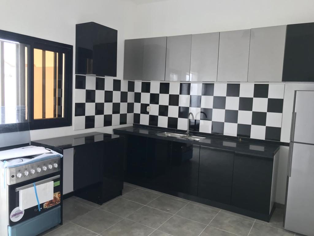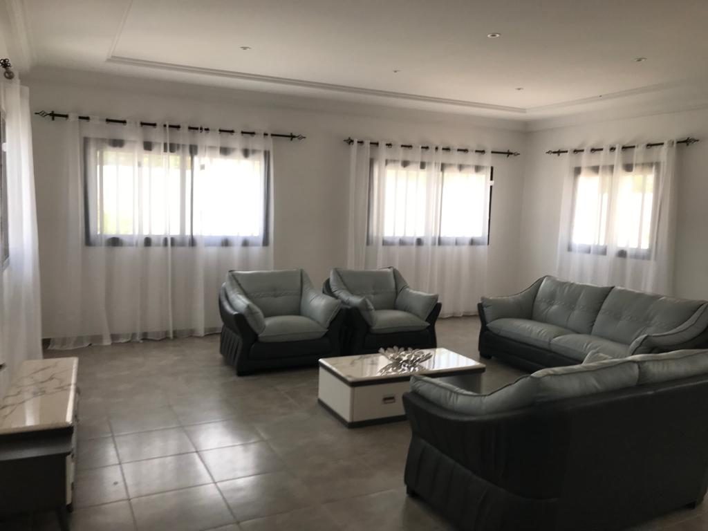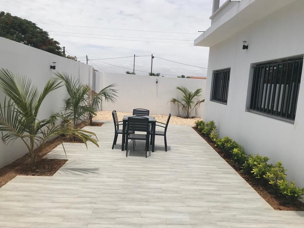 La maison comprend également une cuisine fonctionnelle, une agréable terrasse donnant sur un jardin arboré, ainsi qu’une piscine privée, idéale pour profiter pleinement du climat de Saly.